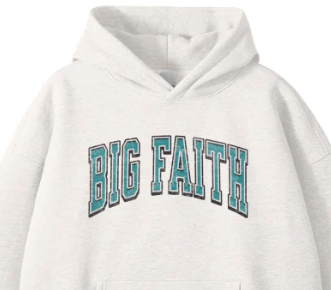 It's time for some BIG FAITH! This hoodie was inspired by Isaiah 12:2: "Behold, God is my salvation; I will trust, and will not be afraid; for the LORD GOD is my strength and my song, and he has become my salvation"