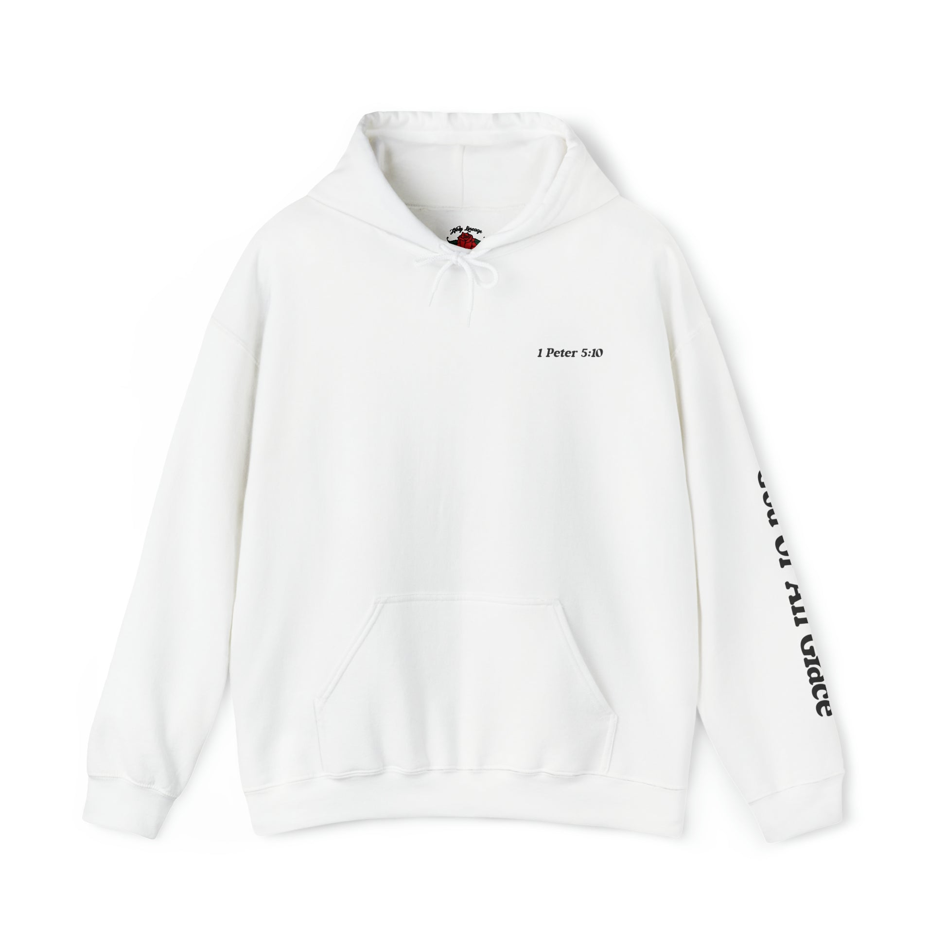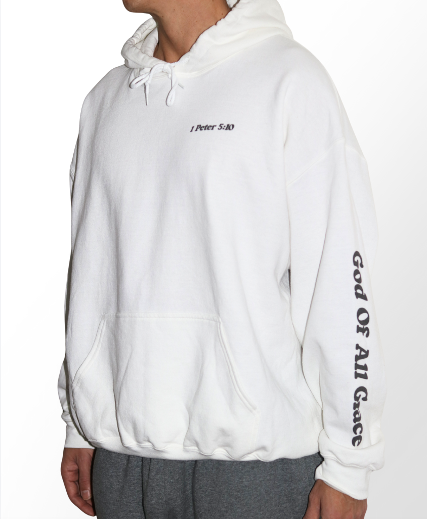 50% cotton, 50% polyester, Medium-heavy fabric, Classic fit, Runs true to size. Here's a hoodie that's perfect for those days that we struggle with suffering and need an encouraging reminder of God's promise to us. With "1 Peter 5:10" printed on the chest and "God of All Grace" on the sleeve, we are reminded "After you have suffered for a little while, the God of all grace, who called you to His eternal glory in Christ, will Himself perfect, confirm, strengthen and establish you.".