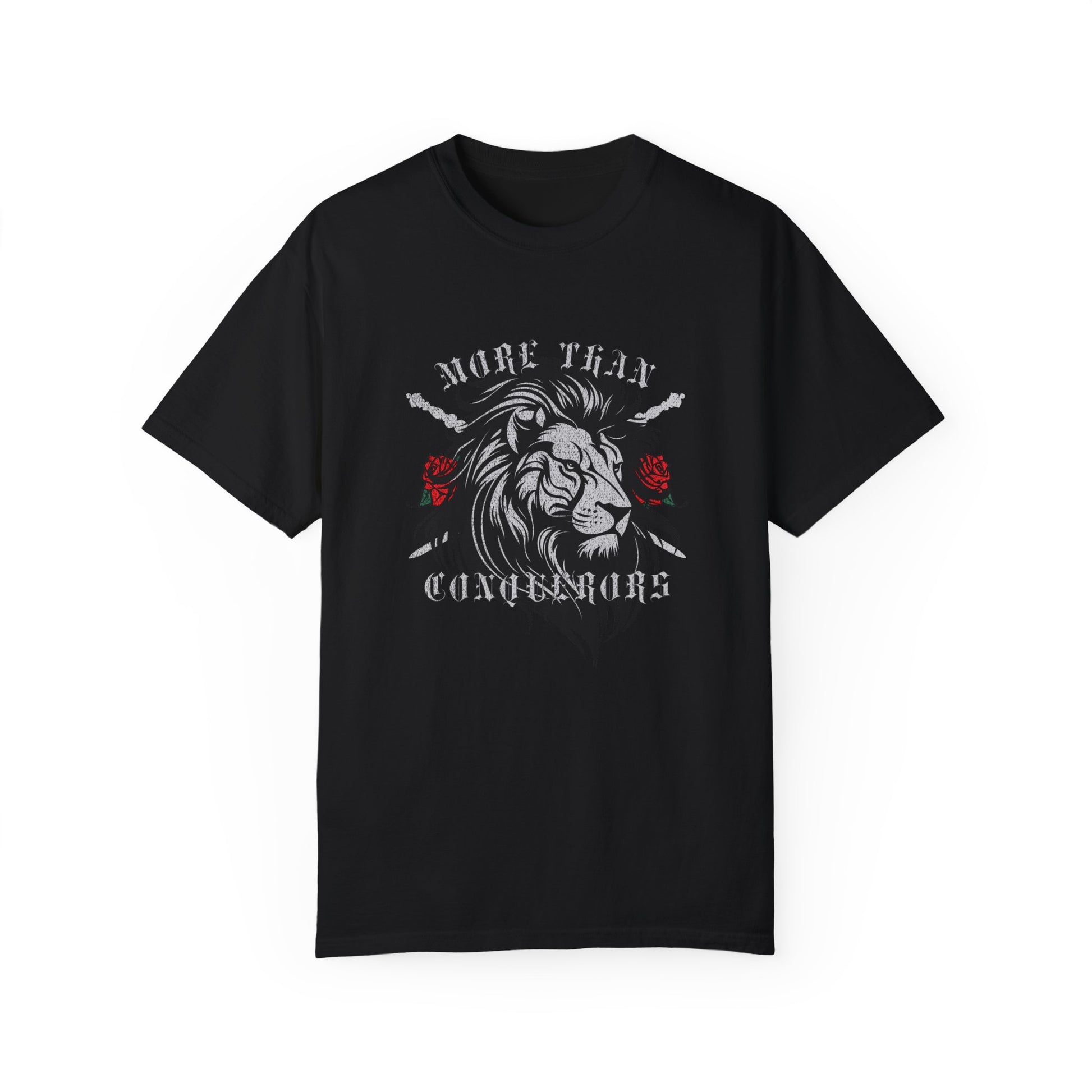 You are more than a conqueror in Christ! The More Than Conquerors Tee is inspired by Romans 8 which says "“in all things we are more than conquerors through Him that loved us”. So wear this Tee with confidence and know that the enemy might put up a fight, but he is no match for Christ in you!