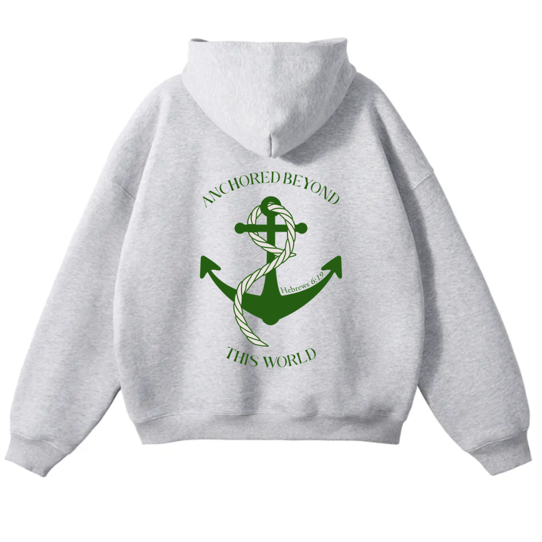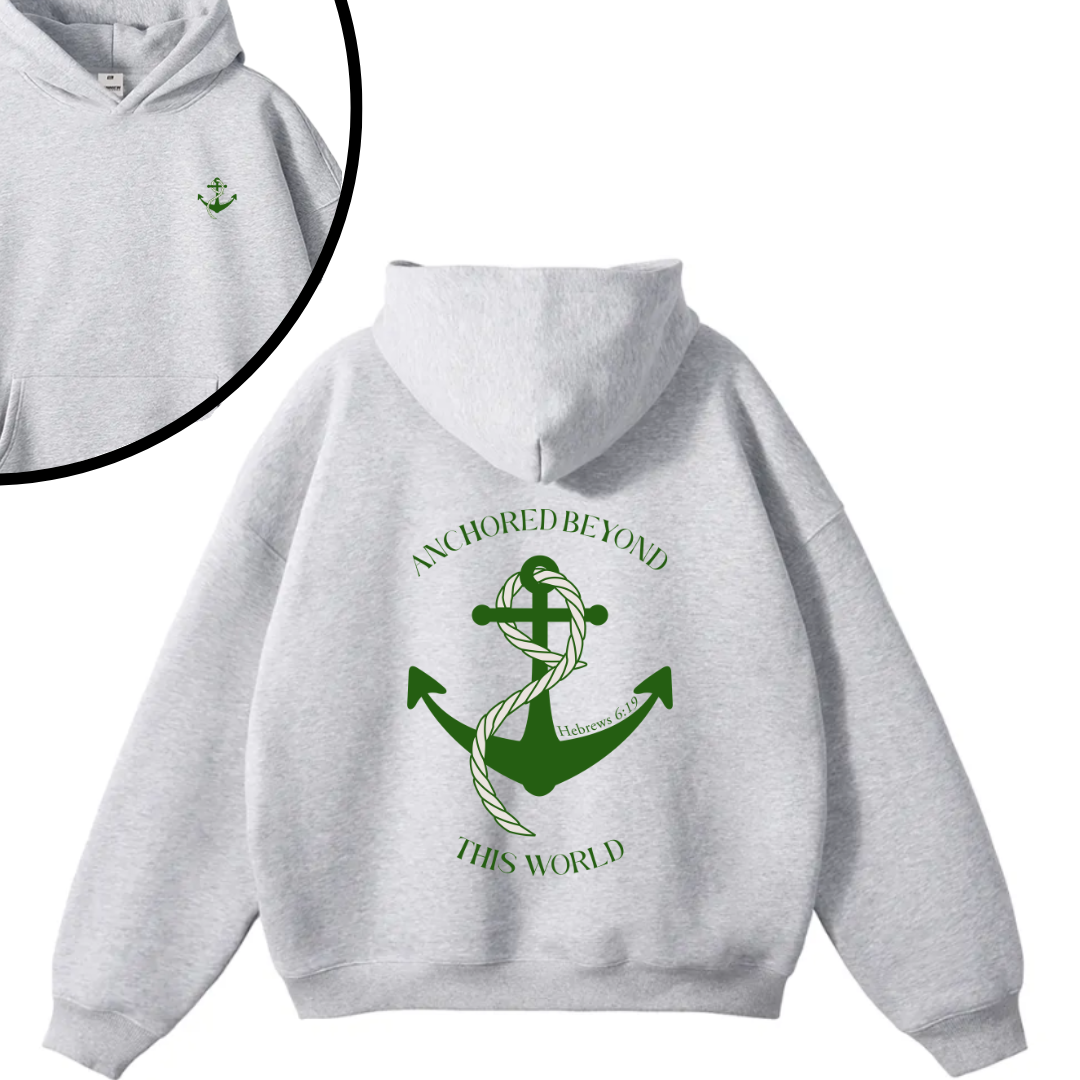 Anchored Oversized Hoodie Inspired by Hebrews 6:19 which says "We have this hope as an anchor for the soul, firm and secure."